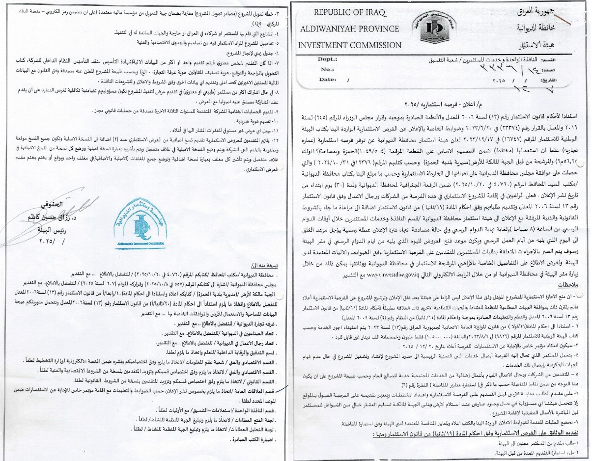 مشروع دواجن الديوانية مشاريع هيئة استثمار الديوانية